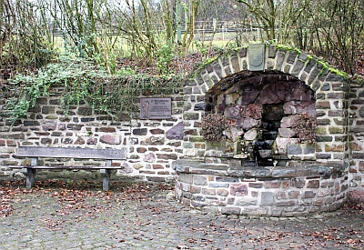 Ursprünglich gab es nur einen Willibrord-Brunnen in Daleiden, den auf unserem Grundstück. Dort wurde Wäsche gewaschen, wurden die Tiere getränkt, usw.. Die Straße, ein befestigter Holperweg, führte direkt am Brunnen vorbei. Den Eingang in den Brunnen konnte man durch eine Metalltür verschließen. Das obere Scharnier dieser Tür kann man heute noch sehen. Es liegt jetzt gerade über der Grasnarbe. Somit kann man daran erkennen, dass die frühere Straße einmal viel tiefer gelegen hat. Das "Aus" für den Brunnen kam 1972. Die Straße, wie sie jetzt verläuft, wurde damals etwas vom Brunnen entfernt , verlegt. Zusätzlich kam ein Kanal, da wo früher die Straße vor dem Brunnen verlief, noch etwas tiefer. Bei den Bauarbeiten wurde die Wasserader unterbrochen. Seitdem führt der Brunnen kein Wasser mehr und wurde dann zugemauert. Außerdem wurde der Boden vor dem Brunnen zur neuen Straße hin angeglichen, das heißt, der Brunnen verschwand zur Hälfte im Boden. [...]