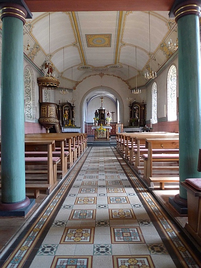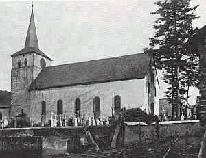 Eine Kirche wird 1330 erwähnt. An den im Visitationsprotokoll von 1570 erwähten Turm wird 1769 eine neue Kirche angebaut und der Bau in den 40er Jahren des 19. Jahrhundert um zwei Fensterachsen verlängert und instandgesetzt. Dabei wurden auch die alten Fenster vergrößert. Das Untergeschoss der Turmes dient als Chor. Dem Turm wurde ein viertes Geschoß hinzugefügt.