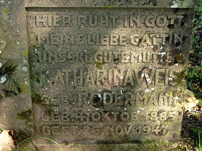 Es wurde eine Grabanlage der Famiie Deges verwandt. Wilhelm Weis und Katharina Rodermann waren Großonkel und Großtante von Eduard Deges und wohnten in Malberg. [1]