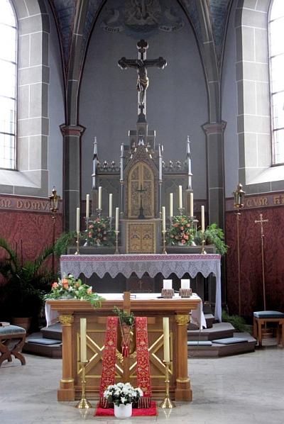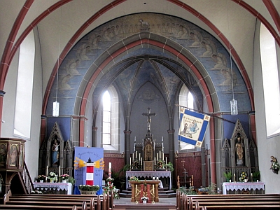 1870-71 von Reinhold Wirtz, Trier, unter Einbeziehung des mittelalterlichen Westturms erbaut. Die Ausstattung blieb weitgehend erhalten. [2]