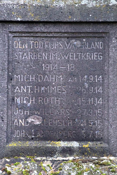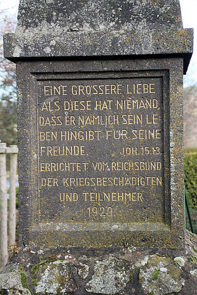 Kriegerdenkmal für die Gefallenen des 1. Weltkrieges. 1920 errichtet vom Reichsbund der Kriegsbeschädigten und Teilnehmer.