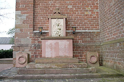 Am 21.04.1921 fand die Einweihung des ersten Kriegerdenkmals durch Pastor Jäger statt. [...] Die Vorderseite zeigt die Namen der 34 Gefallenen und Vermissten des 1. Weltkrieges, die den Heldentod starben. [1]