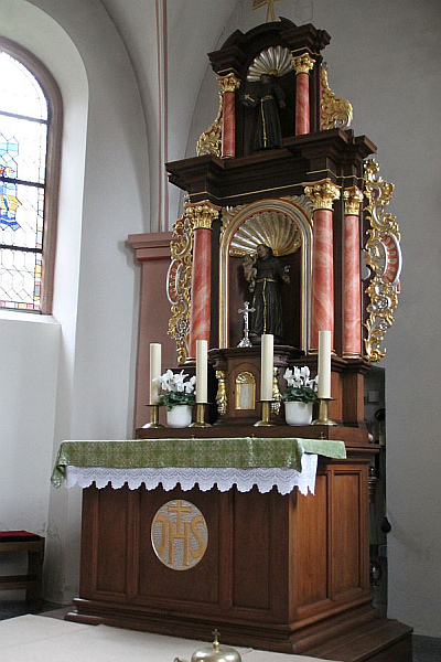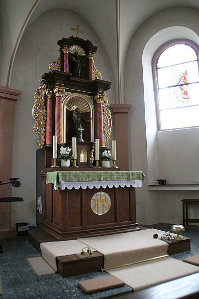 Der schlichte, dreiseitig geschlossene Saalbau wurde laut Türsturzinschrift im Jahre 1775 erbaut. Im Inneren findet man Kreuzgratgewölbe über rechteckigen Wandvorlagen. Das kleine Altarretabel stammt aus dem 18. Jahrhundert.