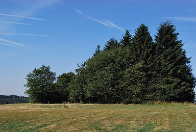 Durch Altgrabungen weitgehend zerstörter, isoliert liegender Grabhügel auf einer kleinen Kuppe nördlich von Eckfeld. Er wurde in der ersten Hälfte des 19. Jahrhunderts von einer Schulklasse durchsucht, wobei ein verzierter Dolch, ein Pfeil, ein von Ringen umgebenes Metallgefäß (darin ein "stark riechender zäher Stoff") und eine Silbermünze (angeblich mit Aufschrift "Caligula"), die etwas tiefer als die übrigen Funde gelegen haben soll, gefunden wurden (zitiert nach Ost 1854). Wenn den Angaben Glauben zu schenken ist, handelt es sich sehr wahrscheinlich um ein frühlatènezeitliches Prunkgrab. Die erwähnte Münze könnte von einer römischen Nachbestattung stammen. Ca. 500 m nordnordöstlich liegt das große Grabhügelfeld der HEK im "Forst".
