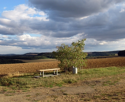 Auf Höhenpunkt 371,2 Meter über Normal-Null, mit Fernsicht über den Saargau. [1]