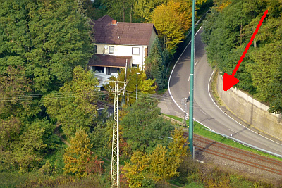 Die Koordinaten beziehen sich auf den Standort von 1891. Die heutige Lage ist nicht bekannt, da vor die damalige Stützmauer aus Sandsteinen eine zweite Mauer aus Beton gesetzt wurde. [Anm. d. Red.]