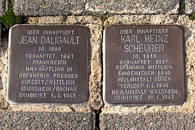 Jean Daligault wurde am 4. Juni 1899 in der französischen Stadt Caen geboren. Nach dem Theologiestudium und der Priesterweihe betreute er als Vikar in der Normandie die katholischen Pfarrgemeinden von Vire, Trouville und Olendon. Wegen seines großen sozialen Engagements, insbesondere für die Jugend, die er für Theaterspiel, Modellieren und Zeichnen begeisterte, galt Jean Daligault als fortschrittlicher Priester. Ungewöhnlich an dem Priester Daligault war auch, dass er sich als freischaffender Maler und Bildhauer weitum hohe Anerkennung erwarb. Den Aufstieg des Nationalsozialismus in dem benachbarten Deutschen Reich beobachtete Daligault mit wachsender Sorge, seit er auf seinen Reisen nach München, Köln und Nürnberg die jubelnde Bevölkerung bei den Propagandaschauen des Regimes gesehen hatte. Nach dem Einmarsch der Wehrmacht 1940 unterstützte er die französische „Resistance“ (geheimer Widerstand) gegen das Besatzungsregime. In Villerville wurde er am 31. August 1941 verhaftet und anschließend für ein Jahr in Paris unter Gefängnisarrest gestellt. Aufgrund des „Nacht- und Nebelerlasses“ (folgend NN) kam Daligault wegen „Widerstandes gegen die Besatzungsmacht“ mit einem Gefangenen-Sammeltransport am 11. Oktober 1942 in das SS-Sonderlager/KZ Hinzert. Dort begann er heimlich auf Bildzeichnungen und Mini-Skulpturen seinen Leidensweg als Zwangsarbeiter und Häftling zu dokumentieren. Bedingt durch den Essensentzug, die Kälte und die Hygienemängel erkrankte Daligault an einer schweren Tuberkulose. Nach seiner Entlassung aus Hinzert erwartete Daligault in den Strafanstalten von Trier, Wittlich (1943: 25. März bis 6. Mai und 10. Juli bis 8. September) und Köln sein Strafverfahren vor dem Volksgerichtshof in Trier. Der Schuldspruch vom 29. November 1943 ist nicht überliefert; wohl aber die von Daligault heimlich gezeichneten Porträtbilder seiner Richter und auch sein letztes Selbstporträt als NNHäftling. Er übergab diese mit seinem gesamten Häftlingswerk dem Trierer Gefängnispfarrer Nikolaus Jonas zur vertraulichen Aufbewahrung. Am 18. August 1944 überstellte ihn die SS in das Zuchthaus nach München-Stadelheim. Im März oder April 1945 starb Jean Daligault im KZ Dachau kurz vor dessen Auflösung unter ungeklärten Umständen. [2]