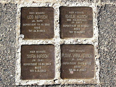 Thalfang nur noch wenige Monate. Sie starben in den ersten Monaten des Jahres 1942 so wie viele tausend andere Häftlinge an Unterernährung, Tuberkulose oder Typhus, obwohl offiziell wahrscheinlich "Altersschwäche" oder "Herzschwäche" diagnostiziert wurde. Diese vier kleine Gedenksteine sollten aber auch an das schwere Schicksal weiterer Tallinger mit dem Namen "Hirsch" erinnern. [2]