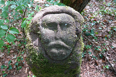 Am Aufstieg vom Parkplatz zur Burg Ramstein gibt es zwei Wegesteine aus der Zeit um 1900, die von einem unbekannten Kölner Künstler in den 1950er Jahren verziert wurden. [1]