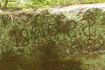 Der Stein mit der Jahreszahl 1925 ist am 'Sumpfigen Weg' zu finden, vom Ramsteiner Weg abgehend. [1]