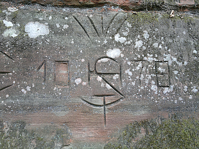 Felszeichnung auf halber Höhe zwischen Maria-Hilf-Kapelle und Mariensäule. [1]