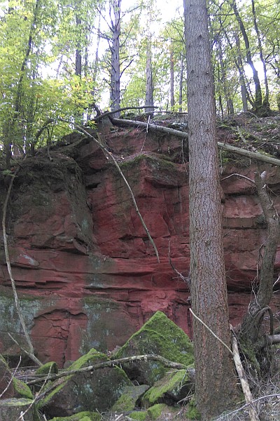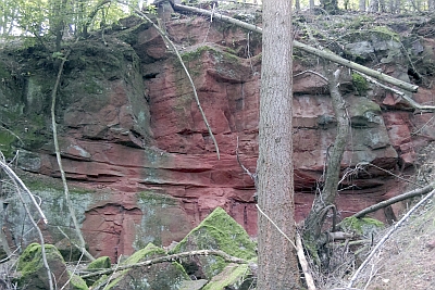 Felsen und heruntergefallene Felsblöcke am "Neuen Weg" oberhalb Layweg. Weiter in Richtung Ehrang Dorf eine Felswand und kleine Felsnischen. [2]