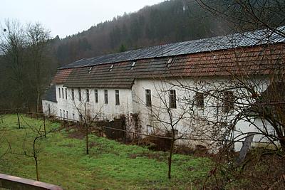 Das Wohn- und Verwaltungsgebäude wurde im Jahr 1749 erweitert. Ansehnlicher Barockbau mit drei Achsen Front, Oberlichttür auf der Mitte und gebrochenem Dach. Am Wirtschaftsgebäude ein wieder verwendeter Türsturz vom Jahr 1686, roter Sandstein, 0,50 Meter hoch und 1,94 Meter breit. In einem von Zweigen gebildeten Mittelmedaillon ein fruchttragender Eichenzweig, das Wappen des Abtes Robert Bootz, zur Seite wieder lange Zweige mit schmalen, angeschmiegten Blättern und dicken Blumen. [1]
