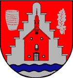 In Rot ein silberner, siebenfach gestufter Treppengiebel, belegt mit einer roten, silbern betagleuchteten Kapelle mit Dachreiter über blauem Wellenbalken, begleitet rechts von einem silbernen Becher, links von einem silbernen Eichenblatt mit drei silbernen Eicheln."