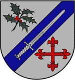 In Silber ein blauer Schräglinksbalken, belegt mit silbernem Schwert. Oben ein grüner Ilexzweig mit vier roten Beeren, unten ein rotes Glevenkreuz."