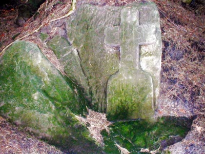 Wenn man sich von unten der sogenannten Schweigestelle (Schweineställe) nähert, sieht man links, etwas abseits vom Weg, einen Felsblock. In diesen sind ein Kreuz und die Inschrift Friedrich Anton Jeger 1733 eingemeißelt. Es heißt, daß dieser Mann bei Steinbrucharbeiten einen tödlichen Unfall erlitt und ihm ein Freund diese Gedenkstätte geschaffen hat.