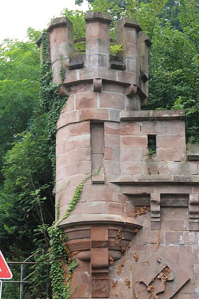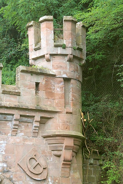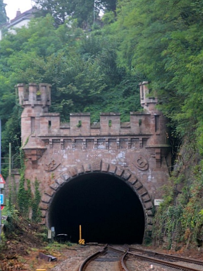 Ostportal des Kyllburger Tunnels der Eifelbahn, Zinnenkranz mit Rundtürmchen, um 1870. [1]