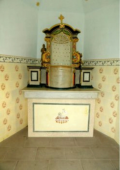 Wegekapelle; kleiner Putzbau, wohl vom Anfang des 20. Jahrhunderts; in der Giebelwand aufwändiges nachbarockes Balkenkreuz, Schiefer, bezeichnet 1811. [1]