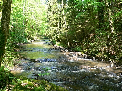 Bis hierhin ist vor circa 43.000 Jahren ein Lavastrom des Mosenbergs geflossen und staute den Bachlauf auf. Die kleinen Stromschnellen sind der verbliebene Teil dieses Hindernisses, das durch die Erosion weitgehend abgetragen wurde.