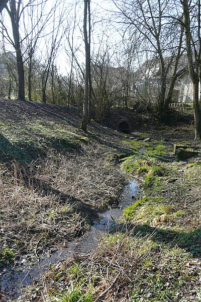 Er entspringt in den Wiesen des Rollsgarten, im oberen Drittel einer Talmulde, die sich von Südwesten nach Nordosten zum Kylltal öffnet. [... Weiter unterhalb des Ortes, wo einst die Feilenmühle stand, kommt der "Eißelbach" hinzu. [...] Der Bach verlässt nun die Gemarkung Butzweiler, springt über dreizehn Wasserfälle, fließt dann an der Burg Ramstein vorbei in die Kyll. [2]