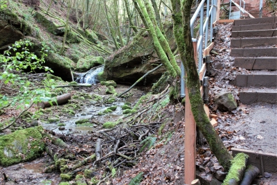 Hier an der Erdscheide zwischen Kalkgestein und Buntsandstein entspringen viele Quellen, die der Butschenbach sammelt und der Kyll zuführt. Vom Dorfkern [Butzweiler] führt in der Nähe des Dorfbrunnens ein Weg direkt zur Burg Ramstein. Vorbei an den Wasserfällen - die der Butschenbach bildet - können sich Wanderer und Naturliebhaber ein beliebtes Ausflugsziel erschließen. [1]