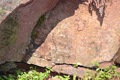 ab ca. 3 - 4 m unter Erdoberfläche eisenerzhaltiger Sandstein sowohl in feiner Form als auch in Platten.