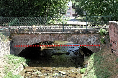 Die Eisenbahnbrücke diente schon beim Hochwasser von 1888 als Meßpunkt: