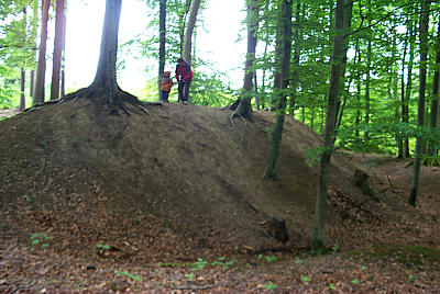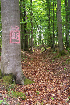 Die 1. von 3 Schanzen mit Laufgraben um den Höhenpunkt 421,9. In unmittelbarer Nähe des Hödeshofes an der Landesstraße 190