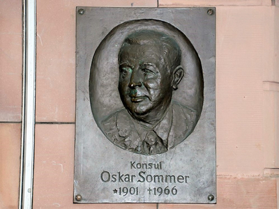 Auf einer rechteckigen Metallplatte zeigt das Relief das Porträt des Geschäftsmannes Oskar Sommer. Das Dreiviertelprofil seines Gesichts ist in eine ovale Vertiefung eingearbeitet und er schaut mit freundlichem Blick und einem Lächeln nach links aus dem Werk heraus. Unterhalb des Ovals befindet sich die Inschrift: »Konsul/ Oskar Sommer/ *1901 † 196«. Am Kragen findet sich die Signatur »C«. [1]