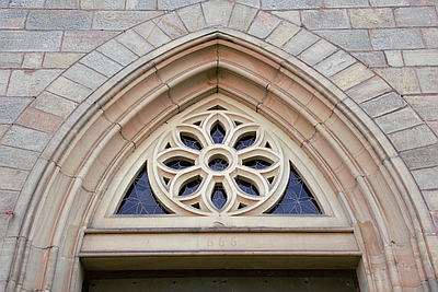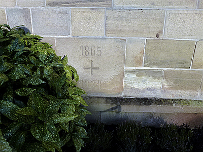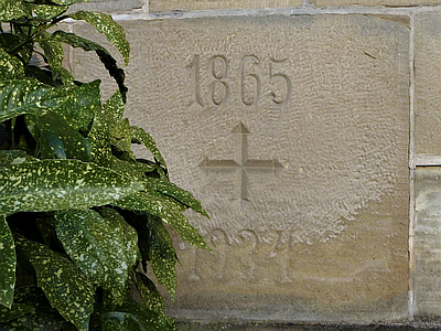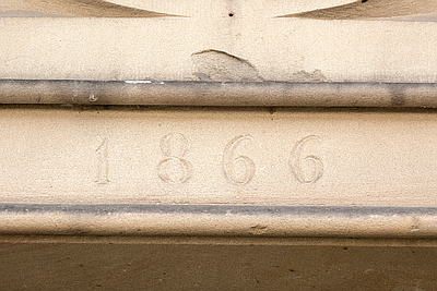 1865 steht für das Datum der Erbauung (Über dem Portal aber die Bauzahl 1866). 1934 wurden die beidseitigen Vorhallen angefügt. [1]