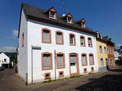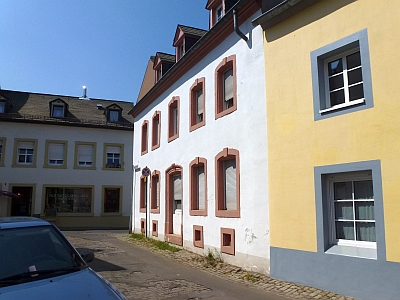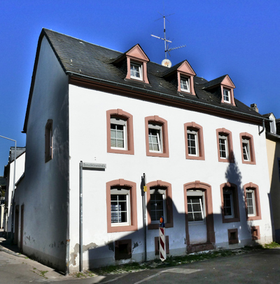 Der traufständige zweigeschossige Putzbau mit fünf Achsen wurde im 18. Jahrhundert erbaut und wurde zwischen 1847 und 1885 als Schulhaus von den Vororten St. Paulin/Maar genutzt. 1979 wurden die straßenseitigen Außenmauern des Eckhauses renoviert. [1]