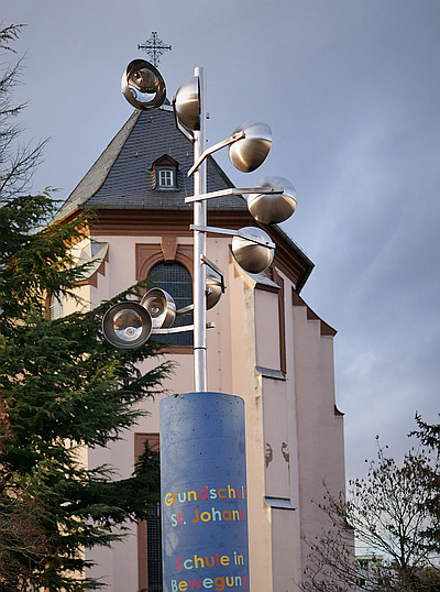 Am Rand des Schulhofs der Grundschule Sankt Johann. Symbolosiert das "Bewegte Schule" Konzept der Schule. [1]