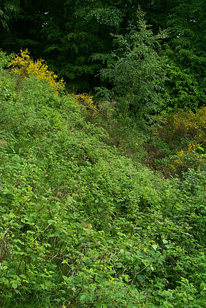 Die 3. von 3 Schanzen mit Laufgraben um den Höhenpunkt 421,9. In unmittelbarer Nähe des Hödeshofes an der Landesstraße 190