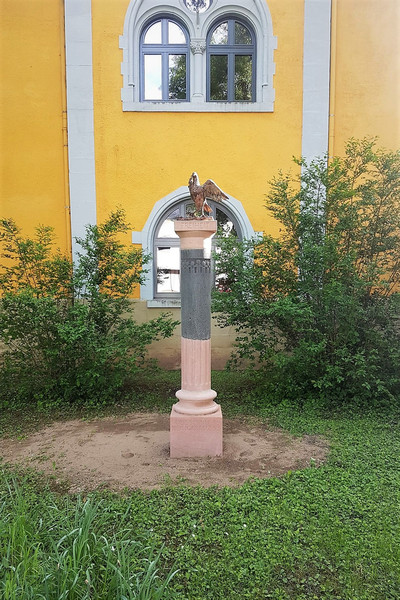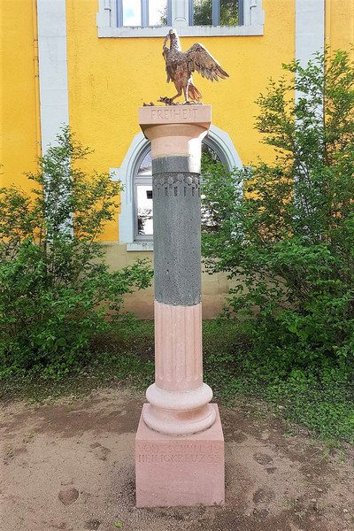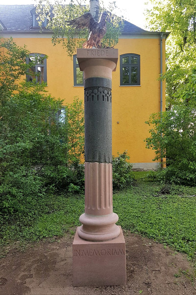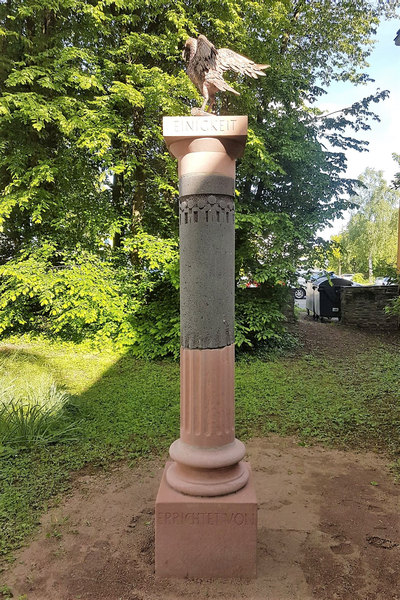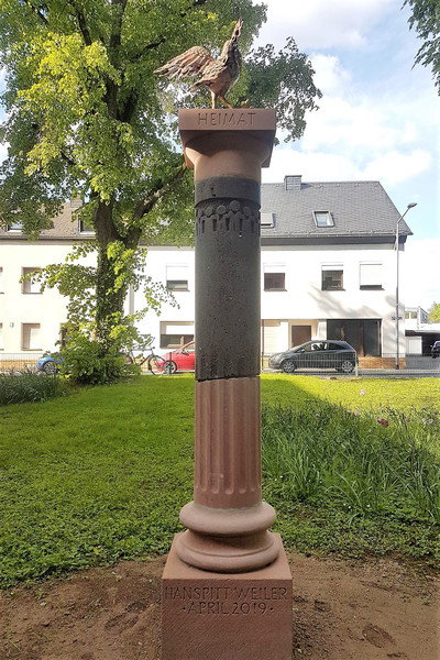 Säule: Wirtz, Henning (Steinmetzmeister), Trier. Friedenstaube: Rösler, Britta (Kupferkünstlerin), Trier.