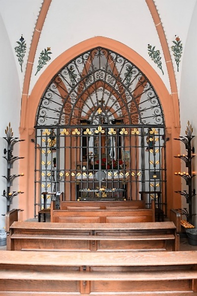 1883 anstelle von Vorgängerbauten aus der Mitte des 17. Jahrhunderts und 1767/68 von der Marianischen Sodalität Schweich errichtete neugotische Kapelle.