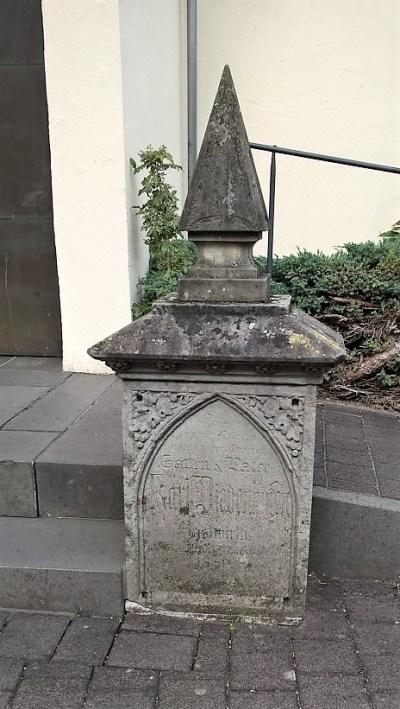 Saalbau, 1789, Architekt wohl Matthias Pulich, Dudeldorf, 1969 erweitert; Westturm angeblich von 1587; am Turm und auf dem Kirchhof Grabplatten und -kreuze, 18. und frühes 19. Jahrhundert; drei Pfarrergrabsteine, spätes 19. und frühes 20. Jahrhundert, teilweise gotisierend. [1]