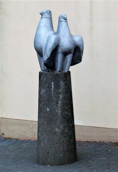 Bei dem Kunstobjekt handelt es sich um eine Falkenplastik aus Aluminiumguss, aufgesetzt auf einen Basaltsockel. Geschaffen wurde sie durch den Künstler Jupp Zimmer (1919-1995) aus Trier, der unter anderem auch die abstrakte Großplastik „Der Wächter“ vor dem Polizeipräsidium (1974) und die „Europa mit dem Stier“ im Garten der Bundesanstalt für Immobilienaufgaben (1980) in der Moselstadt angefertigt hat.