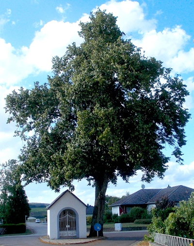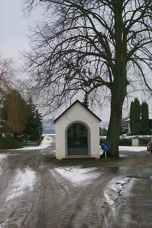 Im Straßenraum neben einer Linde den Abschluß der Römerstraße und den Dorfrand im Nordwesten marmierende Fronleichnamsstation. Im Inneren Holzkruzifix. [1]