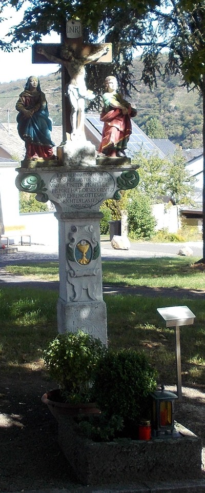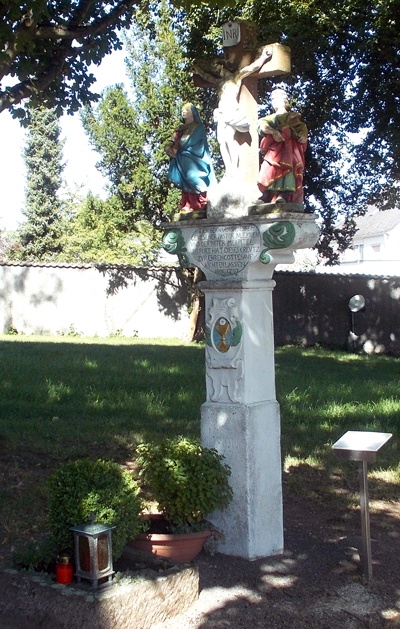 vollplastische Kreuzigungsgruppe mit Maria und Johannes als