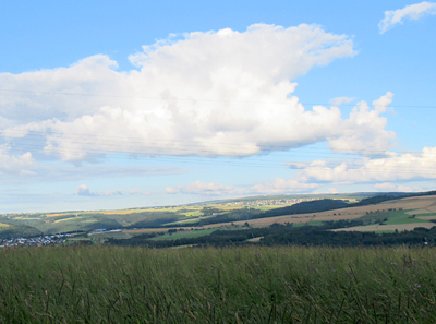 Auf Höhenpunkt 385,9 Meter über Normal-Null. Mit Aussicht bis nach Trier-Petrisberg, Morscheid, Osburger Hochfläche. [1]