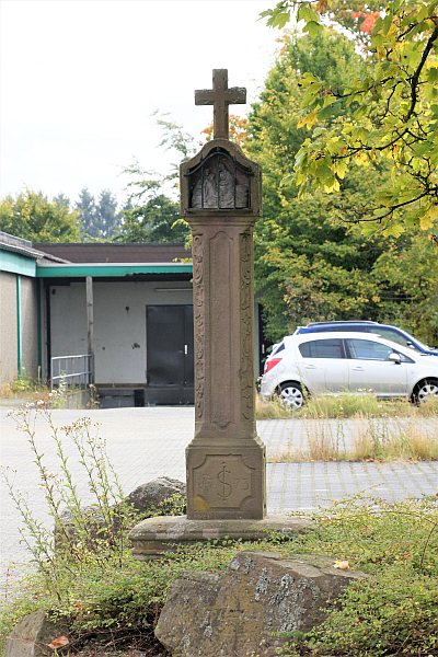 Kapellenstraße, gegenüber dem Friedhof. Nischenkreuz, Rokokoornamente, bezeichnet 1773. [1]