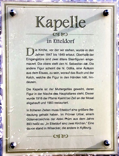 In früheren Zeiten muss Etteldorf eine größere Bedeutung gehabt haben. Im Prümer Urbar, einem Güterverzeichnis der Abtei Prüm aus dem Jahre 893 heißt es: „In Etteldorf sind zwei Kirchen.“ Eine davon stand in Wilsecker, die andere in Kyllburg. [3]