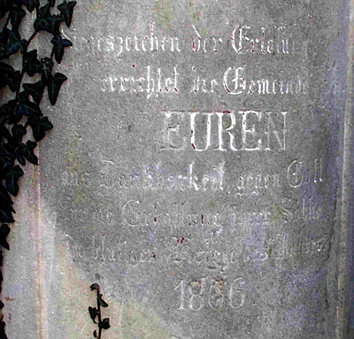Inschrift: ERRICHTET VON DER GEMEINDE EUREN ALS DANK FÜR DIE ERHALTUNG IHRER SÖHNE IM BLUTIGEN KRIEGE DES JAHRES 1866
