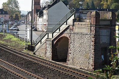 Die 1949 errichtete Pfeiffersbrücke in Ehrang überbrückt die Bahnlinie Koblenz–Trier und verbindet die Servaisstraße mit der Bundesstraße 53. [1]