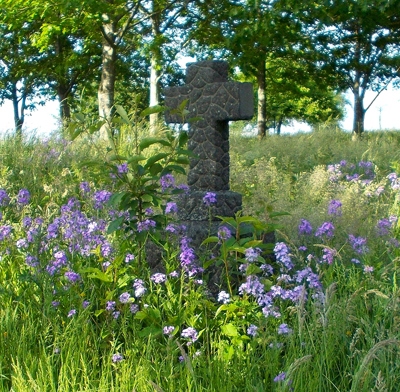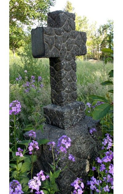 Steinkreuz aus Granit, auf Vorderseite und an Schaftseiten mit Muster versehen. [1]