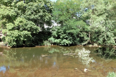 Bis zum Sommer 2021 waren bei Niedrigwasser noch die Fundamentreste sichtbar. Wegen der Hochwasser-Katastrophe vom 15.07.2021 mußte das Flussbett dann ausgebaggert werden. [2]