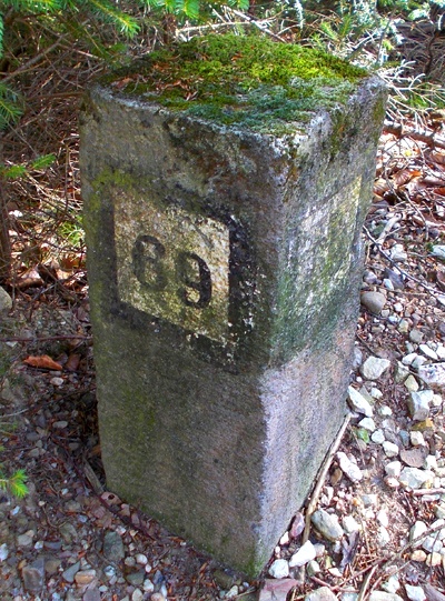 Forstbezirks-Grenzstein (69) im Osburger Wald (Staatsforst Hochwald) gelegen. [1]