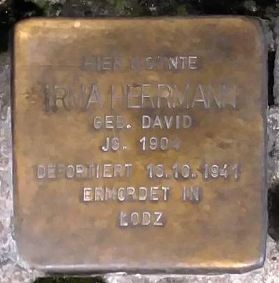 Vor der Neustraße 92 befinden sich 5 Stolpersteine für die Familie Herrmann, die allesamt am 16.10.1941 nach Łodz deportiert wurden und später an verschiedenen Orten ermordet wurden.