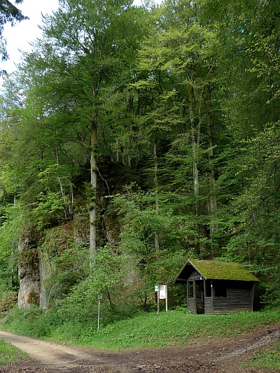 Neben der Jungfernley befindet sich eine Schutzhütte, die den Wanderer zu einer Vesper einlädt.