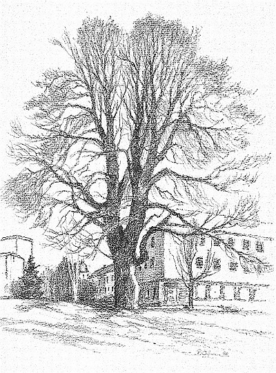 Bild 2: Peter Otten: 130 Jahre alte Rosskastanie auf dem Bitburger Konrad Adenauer Platz, 1990. http://www.eifel-und-kunst.de